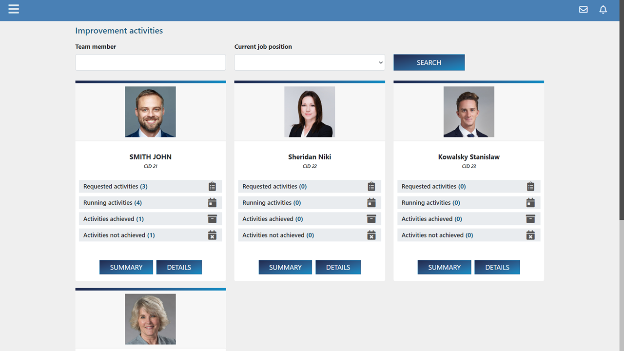 He can therefore request survey from his collaborators or authorize and validate improvement activities. It can also carry out assessments of team members and add skills to their portfolio.