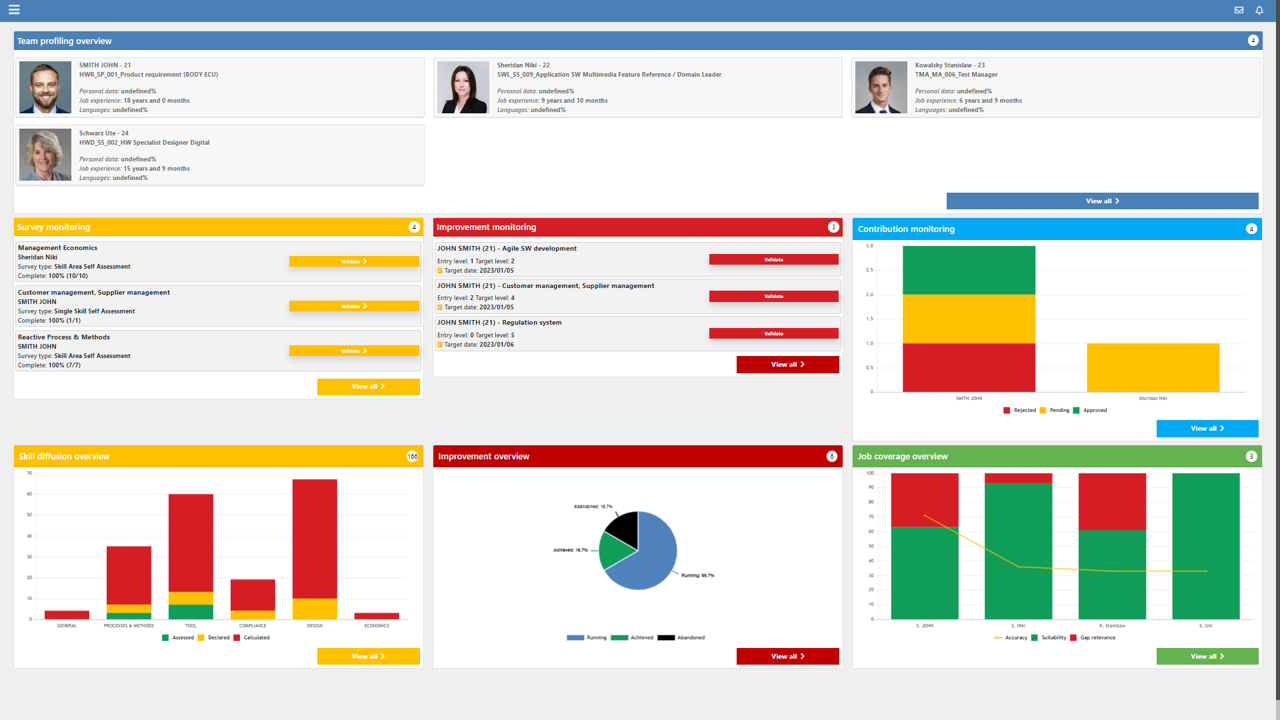 The graphs, on the other hand, present a view of the results of the various skills monitoring and development activities allowed by the Skill Center.